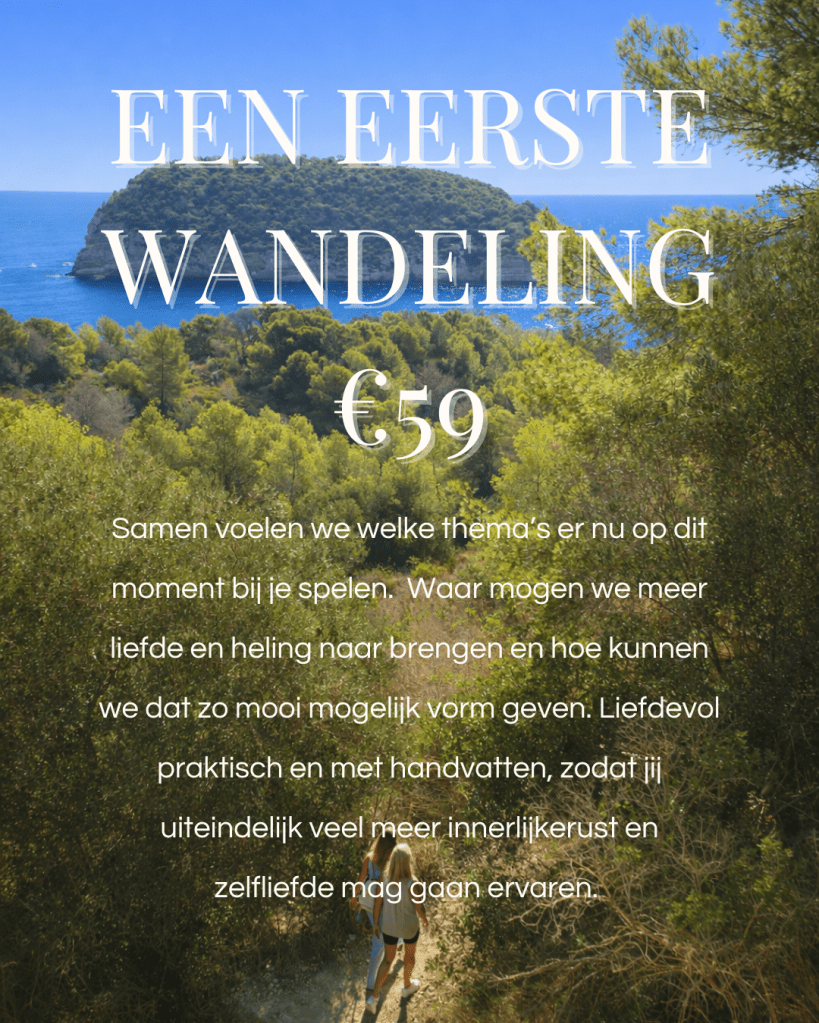 Tijdens een eerste wandeling kijken en voelen we samen wat er precies speelt. Van daaruit voel ik intuïtief aan wat een passend vervolg zou kunnen zijn, en dat overleggen we samen. Ook kijken we naar een ritme dat bij jou past en hoe frequent we elkaar zien.